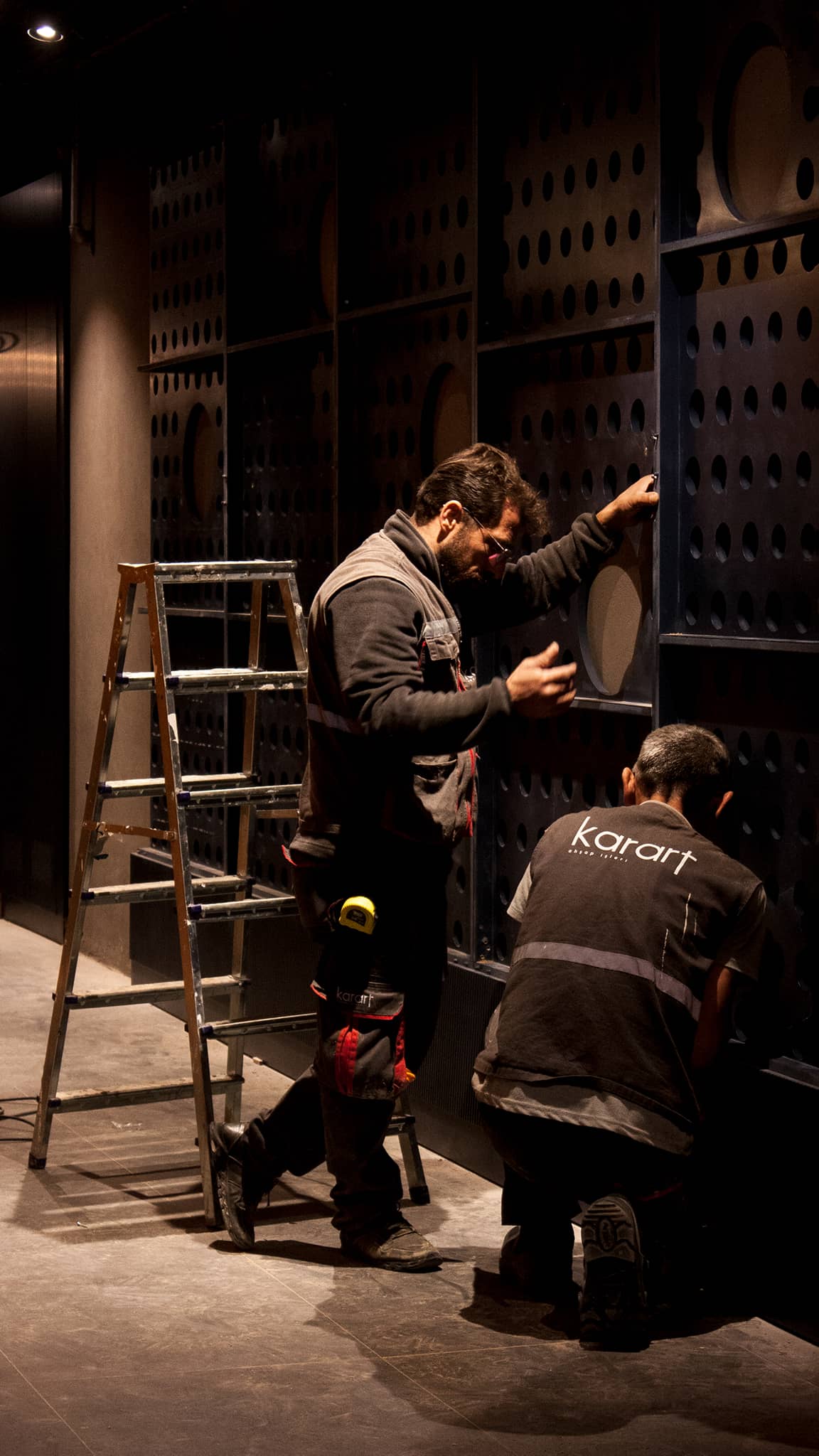 Montaj aşamasında saha ekibi, mimar ve yükleniciyle eşzamanlı çalışır. Tüm uygulama, proje çizimleriyle tam uyum içinde tamamlanır.